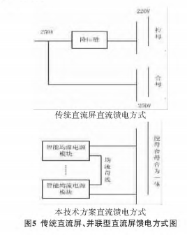 傳統(tǒng)直流屏控母和合母由于電壓不一致,負載要嚴格區(qū)分,比如 ,微機保護.指示燈等必須接入控母,斷路器分合閘、儲能電機等負載必須接人合母。本文所闡述的技術(shù)控母和合母的電壓等級一致,并聯(lián)輸出,可互用,方便用戶的使用。傳統(tǒng)直流屏、并聯(lián)型直流屏饋電方式,如圖5所示。