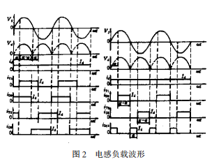 下次T1觸發(fā)導(dǎo)通后重復(fù)上述過程。根據(jù)各元件的導(dǎo)通情況,可知輸出電壓波形及各元件電流波形如圖2所示。