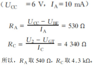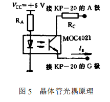只需取下圖1所示的D1和D2兩個二極管,然后接到MOC4021光電隔離器的二極管側(cè),另外2個端點按圖5所示接到晶閘管的控制極G和陽極A上。Rc及Rx的參數(shù)設(shè)計如下: