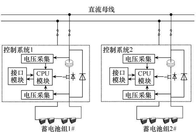 為消除傳統直流屏系統并聯時蓄電池組之間的環流問題,本文規劃一個并聯保護器對兩組電池進行徹底獨立的充電管理系統,其完結原理如圖2所示。
